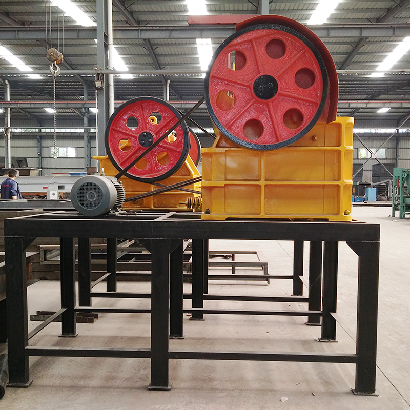 Motor drives belt and belt pulley, makes moving jaw up and down through eccentric shaft. When the moving jaw is up, the angle between lining plate and moving jaw becomes large, and this will push moving jaw plate close to the fixed jaw plate. Durinl g this process, the material is crushed and ground, thus the crushing will be done. When the moving jaw is down, the angle between lining plate and moving jaw becomes small, the moving jaw plate will leave the fixed jaw plate on account of the effect of pulling bar and spring, and then the crushed material will be discharged from the lower opening of the crushing room. With the motor continuously rotating and the material periodically crushed and discharged by the crusher, the mass production can be realized.